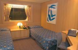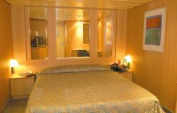 - kajuta s oknem (výhled na moře, 13m2), WC/sprcha, TV/SAT, rádio,klimatizace, telefon, připojení k internetu (nutný vl. PC, za poplatek),mini bar, trezor, fén, velká manželská postel, která jde změnit na 2 postele pro jednu osobu.