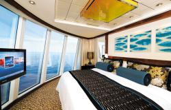 - kajuta s balkonem: WC/sprcha, interaktivní TV/SAT/Pay-Per-View, přístup k internetu*, klimatizace, telefon, lednička, káva/čaj s varnou konvicí/překapávačem na kajutě, trezor, fén, velká manželská postel, která jde změnit na 2 postele pro jednu osobu, zásuvky 110/220 V, bezplatný room service (0.00 – 5.00 za poplatek)