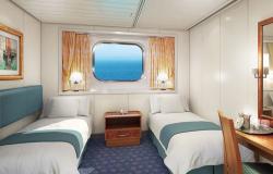 Vnitřní kajuty:- vnitřní kajuta bez okna: WC/sprcha, interaktivní TV/SAT/Pay-Per-View, přístup k internetu*, klimatizace, telefon, lednička, trezor, fén, velká manželská postel, která jde změnit na 2 postele pro jednu osobu, zásuvky 110/220 V, bezplatný room service (0.00 – 5.00 za poplatek)