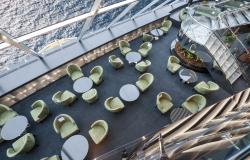 V tomto baru se budete cítit jako v oblacích. O báječnou náladu se kromě nadpozemských nápojů a pochutin postará velkolepý výhled a živá klavírní hra.