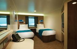 - vnější kajuta s oknem (výhled na moře WC/sprcha, interaktivní TV/SAT/Pay-Per-View, přístup k internetu*, klimatizace, telefon, lednička, trezor, fén, velká manželská postel, která jde změnit na 2 postele pro jednu osobu, zásuvky 110/220 V, bezplatný room service (0.00 – 5.00 za poplatek)